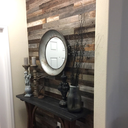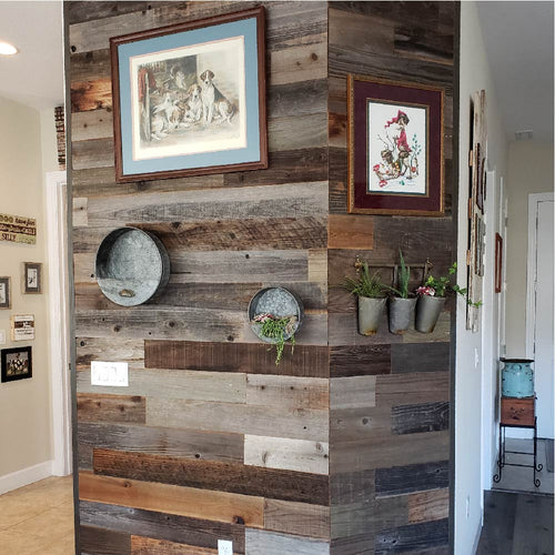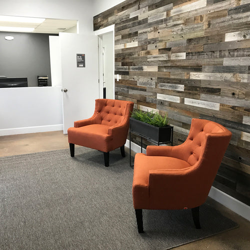 "We got samples from several reclaimed wood manufacturers and Plank and Mill was by far the best looking product. Cutting to size was easy using a hand saw and matt knife. The finished installation looks great and we are looking forward to doing another wall."