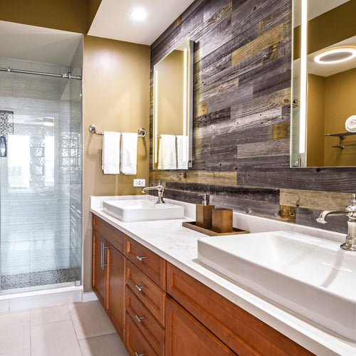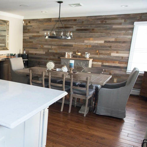 "We were looking for a rustic look while using real materials. We were very excited to find a reclaimed wood product that was also easy to apply. The whole experience couldn't have gone better!"